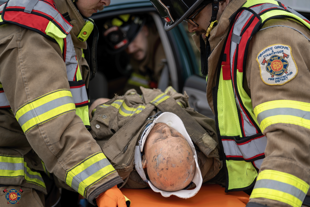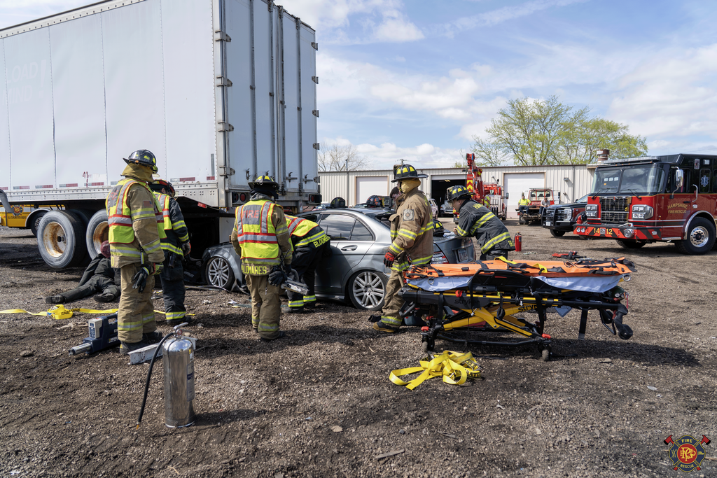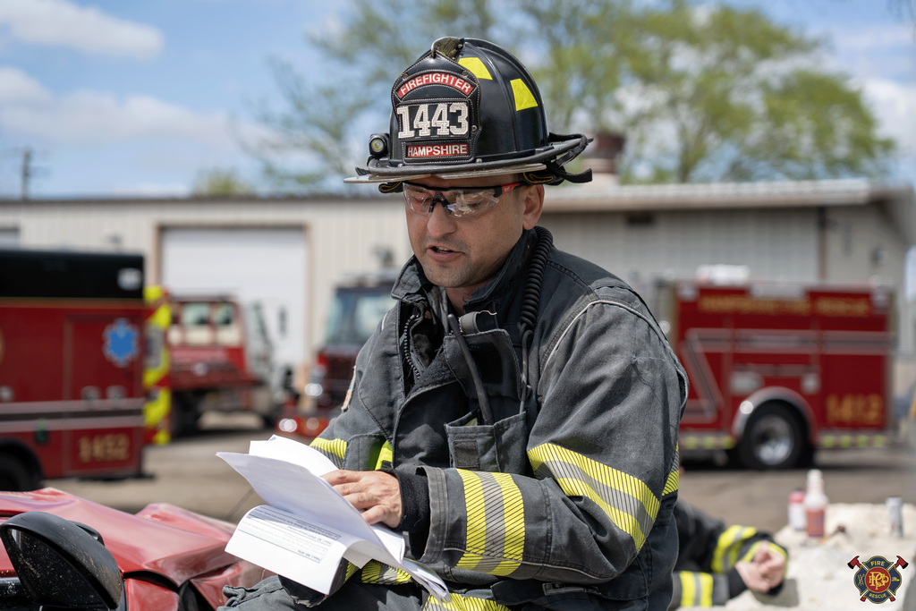 | This week, crews participated in joint training with Hampshire Fire at Schocks Towing yard in Gilberts, where they practiced handling various vehicle accident scenarios involving heavy extrication. Each shift was presented with four different scenarios daily, resulting in a total of twelve scenarios managed throughout the week.