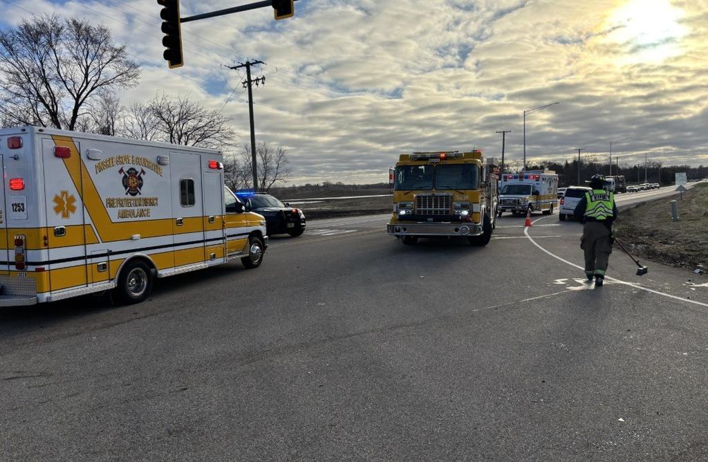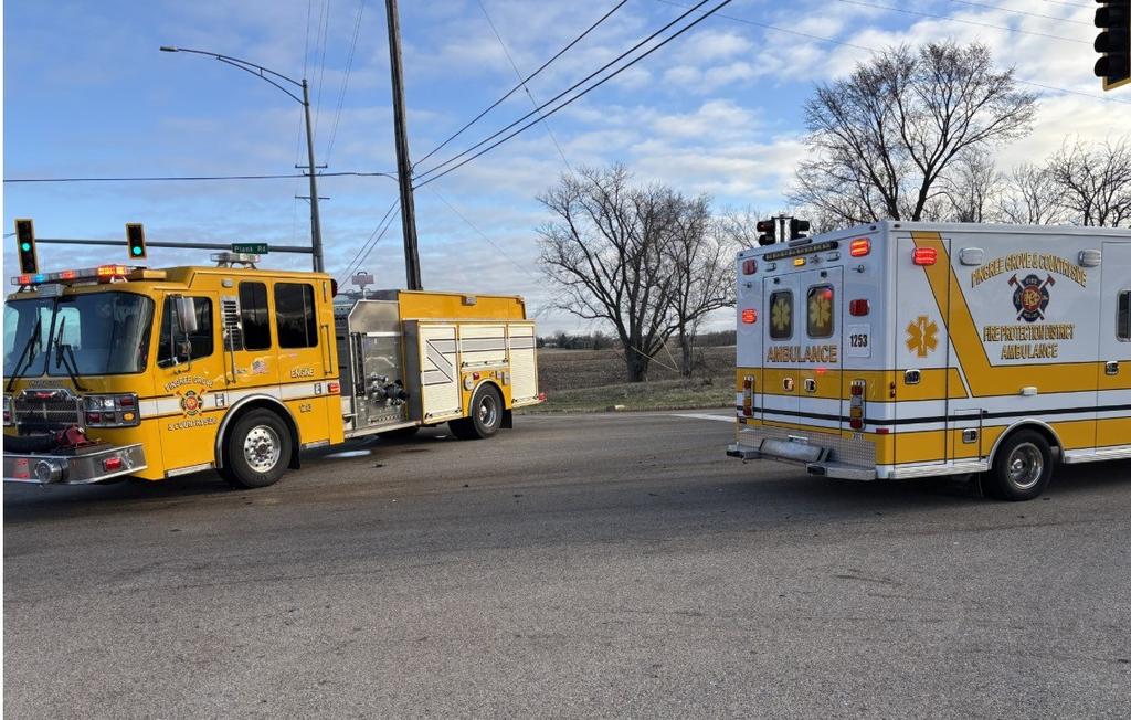 | This Morning at 7:34 am Pingree Grove & Countryside Responded to Rt 47 and Plank Rd for an Accident with Injuries. On arrival Personnel found a 2 Vehicle Accident with Moderate to Heavy Damage and one Vehicle off the roadway. Two additional Ambulances were requested to the scene. Three Patients were transported to Local Hospitals. Plank Rd East of Rt 47 was closed for over an hour, and the Accident is under investigation.